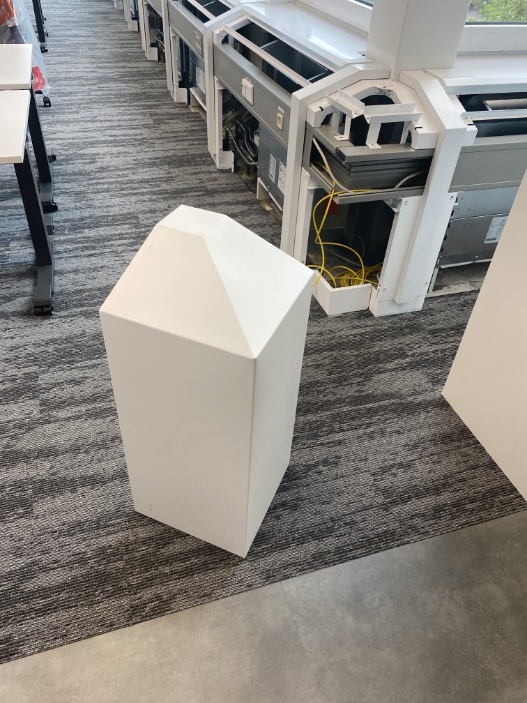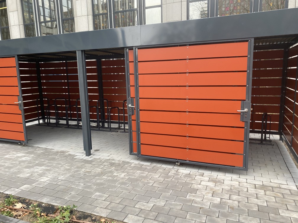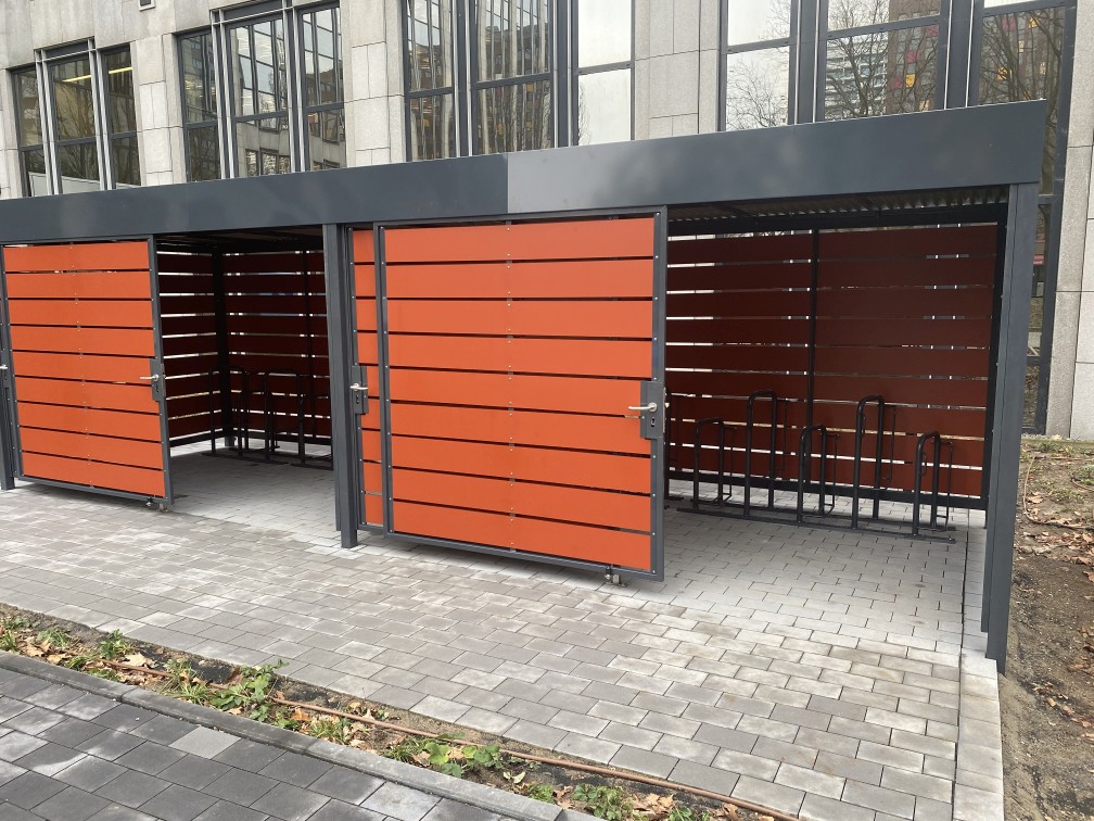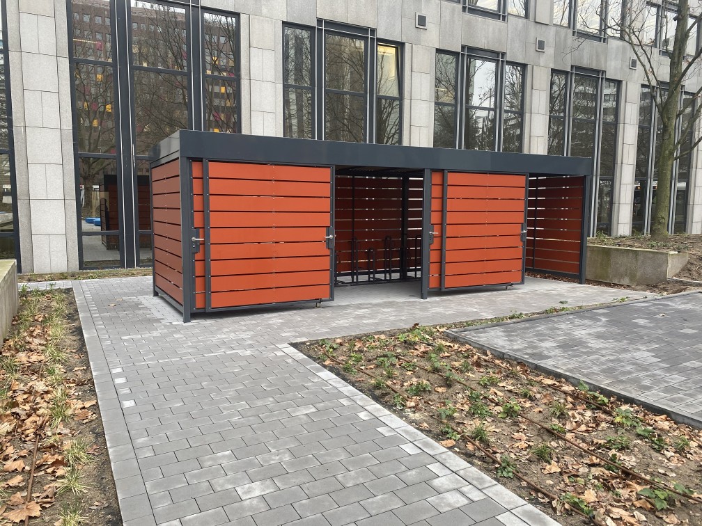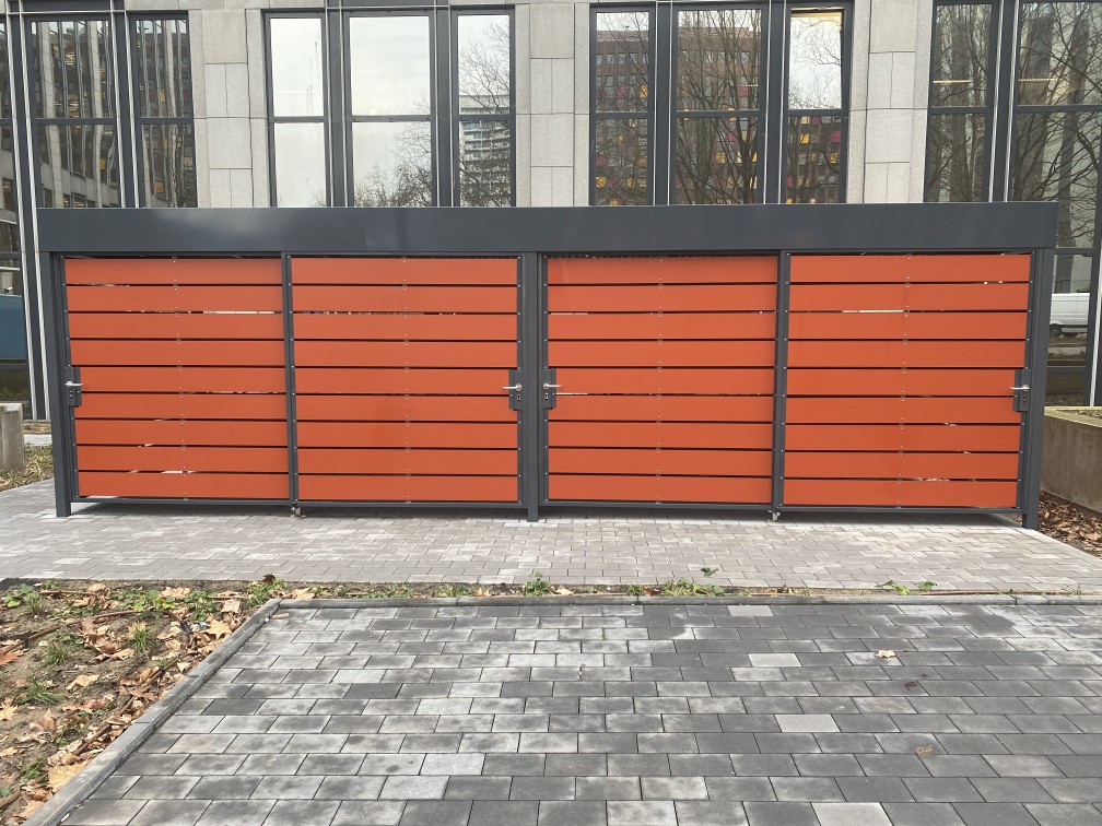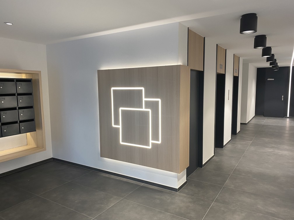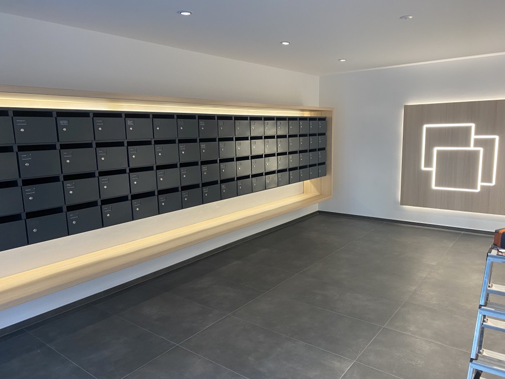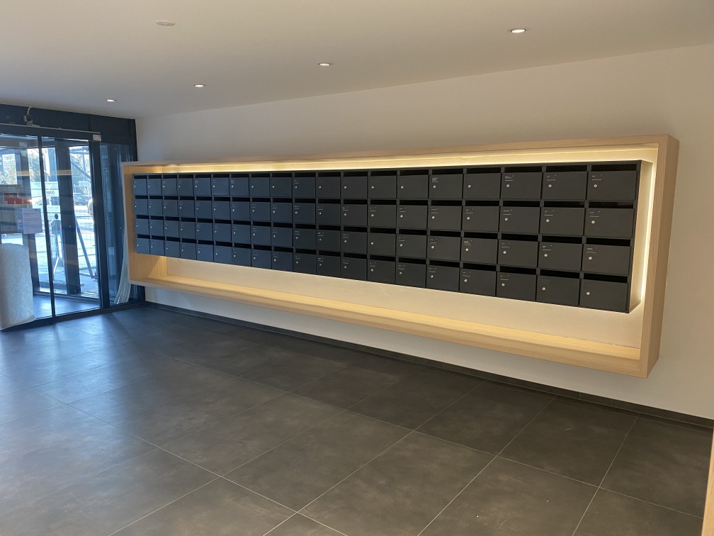 Briefkastenanlage, indirekte Beleuchtung mit Dreikuben-Symbol