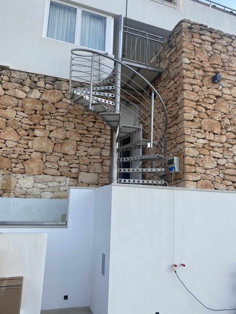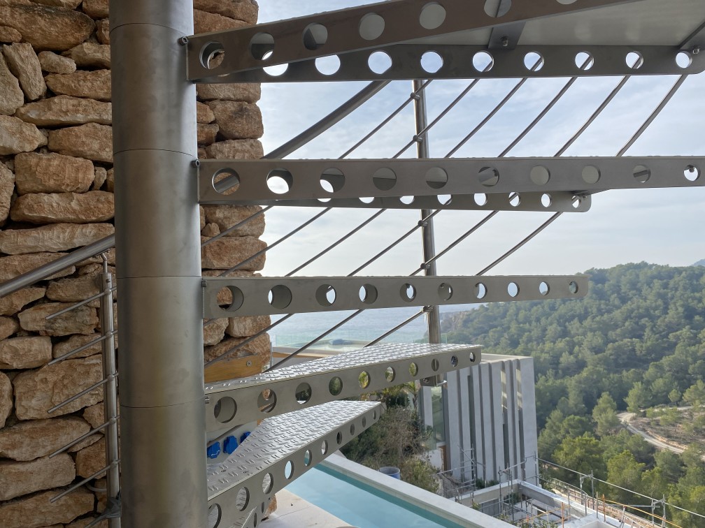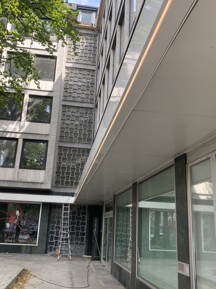 Außenverblendung mit integrierter LED-Beleuchtung und rekonstruierte Innengeländer